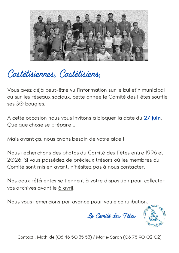 COMITE DES FETES: COLLECTE DE PHOTOS ENTRE 1996 ET 2026