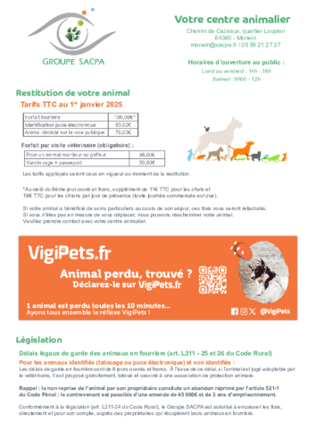 Divagation des animaux - Groupe SACPA-Centre animalier de MONEIN